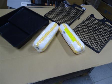 2 ROULEAUX À PEINTURE POUR MUR ET PLAFONDS, 1 GRAND BAC, 2 GRILLES