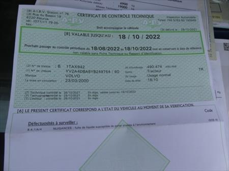 Certificat contrôle technique valable jusqu'au : : 18-10-22