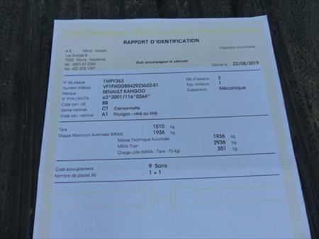 REF 1111 - CAMIONNETTE RENAULT KANGOO (2010-110.327 KM) RENAULT KANGOO