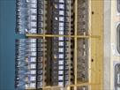 Plusieurs meubles présentoirs supports de distributeurs à vrac avec bac à pelle alimentaire.