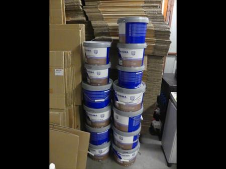 Ensemble de pots de peinture Marque : Sigma Différents Couleurs: 9x Pantone 2583c 10L 4x pantone 1925c 10L 4x pantone 325c 10L 8x pantone 285c 10L 4x pantone 285c 5L certains pont on été utilisés mais la plus part sont intacts