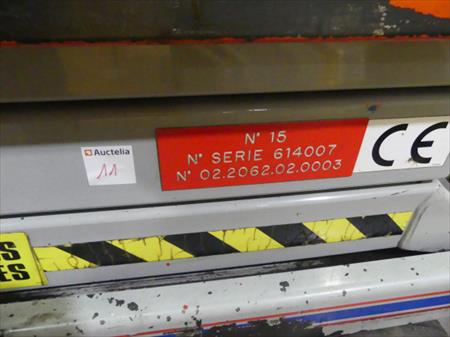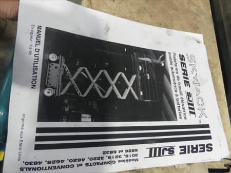 Nacelle ciseaux Marque : Skyjack Modèle : SJ III 3220 Année : 1999 Tension : Sur batterie Longueur : 232 cm Largeur : 81 cm Hauteur : 197 cm Poids : 1715 kg Hauteur de travail : 792 cm Numéro interne vendeur (Ref) : 15 Capacité : 363 kg État : Non Testé Remarques : Batteries plates