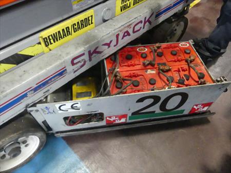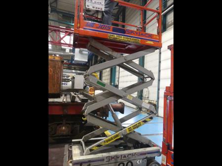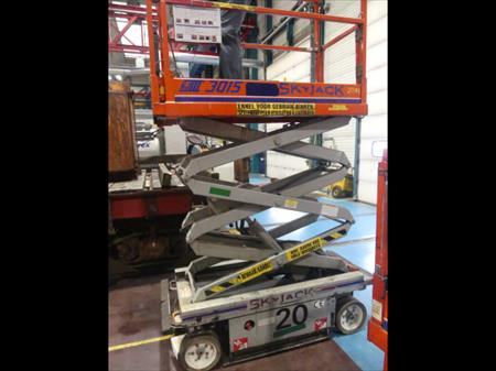 Nacelle ciseaux Marque : Skyjack Modèle : SJ III 3015 Année : 1999 Heures : 519 Tension : Sur batterie Longueur : 169 cm Largeur : 77 cm Hauteur : 198 cm Poids : 1070 kg Hauteur de travail : 640 cm Numéro interne vendeur (Ref) : 20 Capacité : 227 kg État : Testé