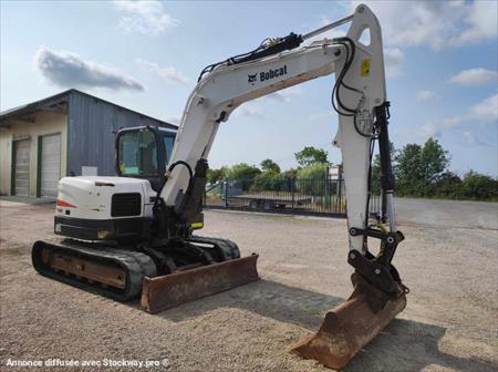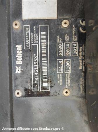 Mini-pelle 8T Bobcat E85 de 2014 avec 4579 heures Bobcat E85 Numéro de stock : 6371 Marque : Bobcat Modèle : 2014 Année : 4577 Heures : 4579 Numéro de série : B34S11958 Poids : 8.54T Hauteur : 2.64m Largeur : 2.3m Longueur : 6.16m Chenilles : Caoutchouc Usure chenille droite : 80% Usure chenille gauche : 50% Nombre de godets : 3 2 Vitesses : Oui Moteur : Yanmar Accessoires : - Ligne auxiliaire - Attache rapide hydraulique - Clim Prix : 35 000€ H.T (TVA à 20% récupérable pour les professionnels) Matériel vendu dans l'état. Possibilité de révision, vidange et garantie en supplément pour un prix de 39 000€ HT Nous sommes une entreprise spécialisée dans le négoce de matériels TP et Agricoles dans les Deux-Sèvres. Une large gamme de produits est disponible sur notre parc : Chariot télescopique et élévateur, Pelle, Dumper, Chargeuse, Compacteur, Compresseur, etc.. Nous pouvons assurer des livraisons dans toute la France. Nous vendons également des pelles de marque Kubota JCB Bobcat Hitachi Neuson Komatsu Case Takeuchi Caterpillar