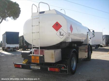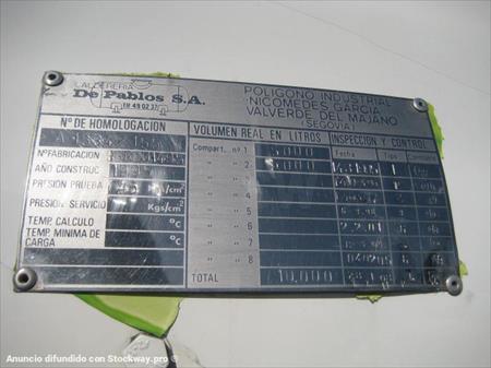 CABINA CORTA CON TRES ASIENTOS, A/A, RADIO CD, MANOS LIBRES, FRENO MOTOR, BLOQ. DIFERENCIAL, TACOGREFO ANALOGICO, SUSP. NEUMÁTICA, 8 VELOCIDADES, CISTERNA INDOX DE ALUMINIO , FABRICACION 95, DOS COMPARTIMEMTOS: 5.000+5.000= 10.000 L., 2 DEVANADERAS, TOMAS CLH, CONTADOR ANALOGICO, RUEDAS: 295/80 R 22,5, TODAS: 50%
