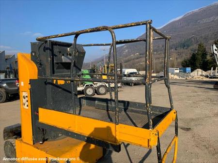 Emplacement: Serrières en Chautagne TVA (20%): 960 EUR Autres informations: Nacelle à Mat vertical électrique2 roues motrice et 2 roues directrice Poids 2500 kg Largeur 99cmPoids admissible 230 kg Hauteur de travail 8 m 00Chargeur intégré Batterie neuve Panier amovible Pneu ok Reprise et livraison ok Entretien ok
