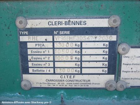 SEMI-REMORQUE BENNE BASCULANTE DE CHANTIER ET TP CLERIBENNE POUSSOIR CLERIBENNE