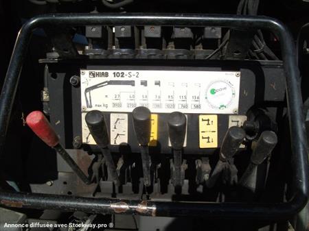 Hiab 102-S-2 - 1380 kg à 7m60 - télécommande - 2 rallonges hydraulique - capacité maxi 3.900 kg dernier contrôle vgp 03/2020 - Benne ridelles rabattables Suspension mécanique av et arr - euro 2 Benne de 5.60 - long ht 8m70