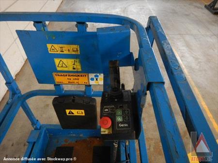 ATOUTLOC vous propose à la vente: Nacelle Ciseaux occasion Marque: GENIE Modèle : GS2032 Année : 2013 Horamètre : 567 heures Motorisation : Electrique Ht. de travail : 8.10 m Ht. de plate-forme : 6.10 m Longueur : 2.44 m Largeur : 0.81 m Hauteur : 2.11 m Poids: 2024 kg Stock : ATL-34987 Prix Hors-Taxes, départ ATOUTLOC : 6 250 € HT Contrôle Vgp inclus. Machine fournie avec certificat CE et manuel utilisateur Livraison possible Pour voir toutes nos nacelles élévatrices, rendez-vous sur notre site internet www.nacelles-occasion.fr (Nacelles ciseaux, Nacelles télescopiques, Nacelles articulées, Nacelles sur remorque, Nacelles araignées, Nacelles sur chenilles, Nacelles à mât vertical) Pour tous renseignements, n’hésitez pas à nous contacter par mail ; ou par téléphone au 03.27.22.34.65. ATOUTLOC 223 Avenue Jules Guesde 59124 ESCAUDAIN