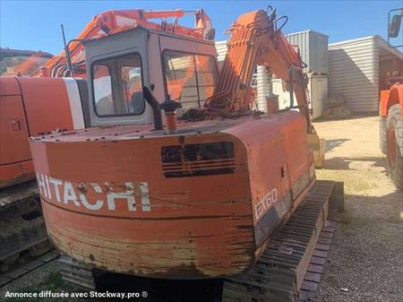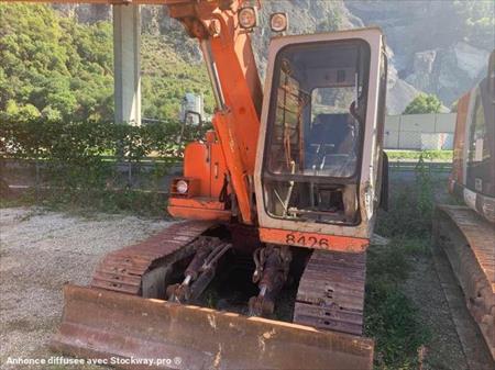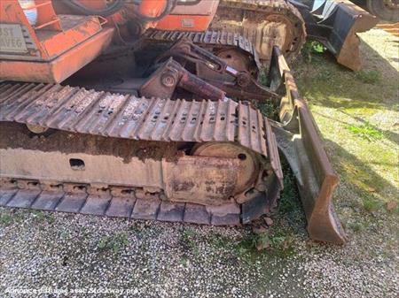 > Cette pelle sur chenilles de la marque Hitachi est le modèle EX60 de 1990. Longueur : 6 M 10 Largeur : 2 M 34 Hauteur : 2 M 57 Poids : 7300 kg. Largeur chenilles : 450 MM Flèche à volée variable Lame Moteur Nissan FD 3304 de 40 kW (54 ch) 7813 Heures
