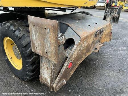 > Cette pelle sur pneus de la marque New Holland est le modèle WE170C de 2011. Longueur : 8 M 40 Largeur : 2 M 52 Hauteur : 2 M 85 Poids : 18500 kg. Taille pneus : 10.00 - 20 Flèche à volée variable Lignes hydraulique supplémentaires Attache rapide Hydraulique Pneus jumelés Lame 2 stabilisateurs Clapets de sécurité Filtre à particules diesel Moteur New Holland 667 T