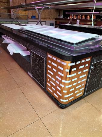 4 grands buffets doubles un chaud trois froids avec bacs gastro plats mélamine et un congélateur a glace dimensions environ 6 mètres par 2 mètres faire offre pas de livraison démontage facile se démonte en 4 morceaux Plus de photos sur demande