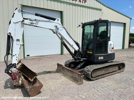 Bobcat E45 Numéro de stock : 6973 Marque : BOBCAT Modèle E45 Année 2019 Heures 1575 Numéro de série B3NR13098 Poids 4571 kg Hauteur 255 cm Largeur 197 cm Longueur 320 cm Chenilles caoutchouc Usure chenille droite 60% Usure chenille gauche 60% Godets 2 Nombre de godets 30 cm /175 cm 2 Vitesses oui Moteur 4 cylindres Kubota Accessoires : - Attache rapide hydraulique - Ligne auxiliaire - Accélérateur Automatique Tarif vendu dans l’état : 31000€ H.T (TVA à 20% récupérable pour les professionnels) Possibilité de matériel vendu révisé, vidangé et garantie pour un supplément de 2000€ HT. Nous sommes une entreprise multimarques spécialisée dans le négoce de matériels TP et Agricoles dans les Deux-Sèvres. Une large gamme de produits est disponible sur notre parc : Mini pelle, chariot télescopique, dumper, remorques et autres matériels divers. Nous pouvons assurer des livraisons dans toute la France.