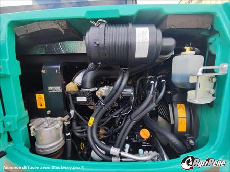 KOBELCO SK55RX-6E Numéro de stock : 6784 Marque : KOBELCO Modèle SK55RX-6 E Année 2021 Heures 1109 h Numéro de série PS04013524 Poids 5140 KG Hauteur 2530 mm Largeur 1940 mm Longueur 5550 mm Chenilles CAOUTCHOUC Godets 3 2 Vitesses oui Moteur YANMAR 4TNV88C Accessoires : - attache rapide hydraulique - ligne auxiliaire - cabine - climatisation - balancier long Tarif vendu dans l’état : 39000€ H.T (TVA à 20% récupérable pour les professionnels) Possibilité de matériel vendu révisé, vidangé et garantie pour un supplément de 2000€ HT. Nous sommes une entreprise multimarques spécialisée dans le négoce de matériels TP et Agricoles dans les Deux-Sèvres. Une large gamme de produits est disponible sur notre parc : Mini pelle, chariot télescopique, dumper, remorques et autres matériels divers.