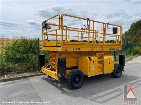 ATOUTLOC vous propose à la vente: Nacelle Ciseaux occasion Marque: HAULOTTE Modèle : H15SX Année : 2018 Horamètre : 1592 heures Motorisation : Diesel 4x4 Ht. de travail : 15 m Ht. de plate-forme : 13 m Longueur : 4.18 m Largeur : 2.25 m Hauteur : 2.77 m Poids: 6340 kg Stock : ATL-F24035 Prix Hors-Taxes, départ ATOUTLOC : 29 000 € HT Contrôle Vgp inclus. Machine fournie avec certificat CE et manuel utilisateur Livraison possible Pour voir toutes nos nacelles élévatrices, rendez-vous sur notre site internet www.nacelles-occasion.fr (Nacelles ciseaux, Nacelles télescopiques, Nacelles articulées, Nacelles sur remorque, Nacelles araignées, Nacelles sur chenilles, Nacelles à mât vertical) Pour tous renseignements, n’hésitez pas à nous contacter par mail ; ou par téléphone au 03.27.22.34.65. ATOUTLOC 223 Avenue Jules Guesde 59124 ESCAUDAIN
