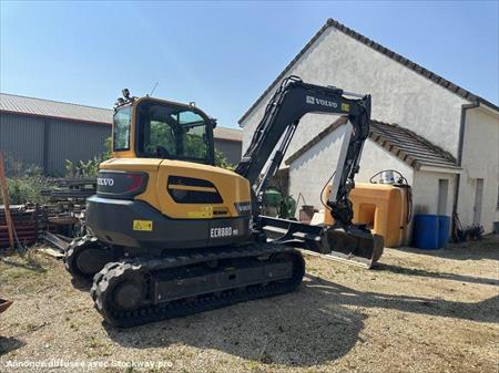 Mini-pelle VOLVO ECR88D Année : 2020 (mise en route en 2022) Heures : 1200 Poids opérationnel 8 820 kg Largeur hors tout : 2300 mm Longueur hors tout : 6 370 mm Moteur Volvo D2.6H (43 kW) Climatisation Déport pied de flèche - Balancier long - Lame - Ligne hydraulique Coupleur hydraulique GEITH Godets de tranchée, de terrassement et curage inclinable