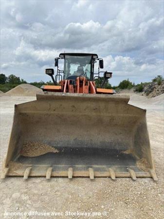 Chargeuse sur pneus HITACHI type ZW220 Année : 2008 Heures : 8900 Poids : 19 t Godet à dents : Capacité 2.8 m³ Longueur de transport : 8.35 m - Largeur de transport : 2.98 m - Hauteur de transport : 3.37 m Vitesse de déplacement : 36.5 km/h Hauteur max. de déversement : 2.9 m Moteur Isuzu 6 HK 1 XDHAA (164 kW)