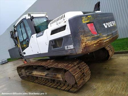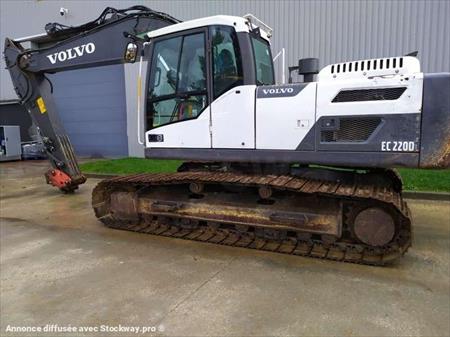 Cette pelle sur chenilles de la marque Volvo est le modèle EC220DL de 2014. Longueur : 9 M 79 Largeur : 2 M 99 Hauteur : 2 M 95 Poids : 24080 kg. Largeur chenilles : 600 MM Flèche monobloc Clapets de sécurité Lignes hydrauliques supplémentaires Portée maximum : 9 M 09 Profondeur de dragage : 5 M 83 Moteur Volvo D6J de 129 kW (175 ch) 10108 Heures