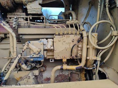 Cette niveleuse de la marque Caterpillar est le modèle 14 G de 1974. Longueur : 9 M 20 Largeur : 2 M 85 Hauteur : 3 M 56 Poids : 17.500 kg. Taille pneus : 20.5-25. Lame centrale de 4 M 27 Ripper Cabine ROPS. Moteur Caterpillar 3306 T de 133.8 kW ( 182 ch). 28.700 Heures
