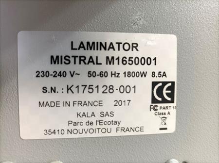 LAMINATEUR KALA MISTRAL 1650 PLASTIFICATION 1 ROULEAU CHAUD KALA