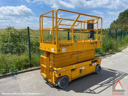 ATOUTLOC vous propose à la vente: Nacelle Ciseaux occasion Marque: HAULOTTE Modèle : COMPACT 12 Année : 2019 Horamètre : 117 heures Motorisation : Electrique Ht. de travail : 12 m Ht. de plate-forme : 10 m Longueur : 2.46 m Largeur : 1.20 m Hauteur : 2.38 m Poids: 2470 kg Stock : ATL-F25791 Prix Hors-Taxes, départ ATOUTLOC : 10 950 € HT Contrôle Vgp inclus. Machine fournie avec certificat CE et manuel utilisateur Livraison possible Pour voir toutes nos nacelles élévatrices, rendez-vous sur notre site internet www.nacelles-occasion.fr (Nacelles ciseaux, Nacelles télescopiques, Nacelles articulées, Nacelles sur remorque, Nacelles araignées, Nacelles sur chenilles, Nacelles à mât vertical) Pour tous renseignements, n’hésitez pas à nous contacter par mail ; ou par téléphone au 03.27.22.34.65. ATOUTLOC 223 Avenue Jules Guesde 59124 ESCAUDAIN