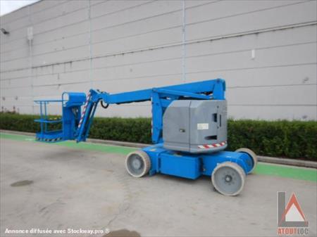 ATOUTLOC vous propose à la vente: Nacelle articulée occasion Marque: GENIE Modèle : Z34-22N Année : 2011 Horamètre : 1135 heures Motorisation : Electrique Ht. de travail : 12.52 m Ht. de plate-forme : 10.52 m Déport : 6.78 m Longueur : 5.75 m Largeur : 1.47 m Hauteur : 2 m Poids: 5227 kg Stock : ATL-36703 Prix Hors-Taxes, départ ATOUTLOC : 16 950 € HT Contrôle Vgp inclus. Machine fournie avec certificat CE et manuel utilisateur Livraison possible Pour voir toutes nos nacelles élévatrices, rendez-vous sur notre site internet www.nacelles-occasion.fr (Nacelles ciseaux, Nacelles télescopiques, Nacelles articulées, Nacelles sur remorque, Nacelles araignées, Nacelles sur chenilles, Nacelles à mât vertical) Pour tous renseignements, n’hésitez pas à nous contacter par mail ; ou par téléphone au 03.27.22.34.65. ATOUTLOC 223 Avenue Jules Guesde 59124 ESCAUDAIN