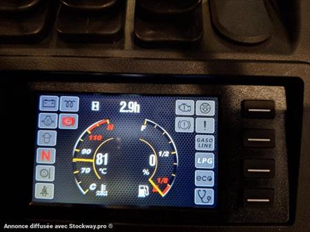 Freins à bain d'huile Cabine suspendue Mât à visibilité améliorée Rétro panoramique Lyre plus bouteille de gaz Prise USB Isolation phonique Contrôle de présence XF2 Poignée de klaxon arrière Suppression reservoir GPL Echappement horizontal Siège SC29 avec microswitch et accoudoir