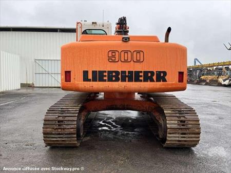 Cette pelle sur chenilles de la marque Liebherr est le modèle R 900 C Litronic de 2012. Longueur : 8 M 45 Largeur : 2 M 85 Hauteur : 3 M 05 Poids : 20500 kg Largeur chenilles : 600 MM Flèche à volée variable Clapets de sécurité Lignes hydrauliques supplémentaires Graissage centralisé automatique Caméra de recul Attache hydraulique Liebherr SW48 Climatisation Moteur Liebherr D934 S A6 de 95 kW (127 ch) 13664 Heures