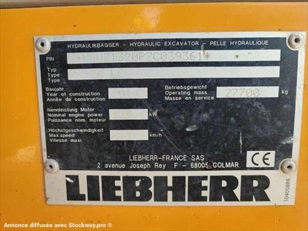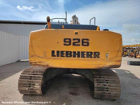 Cette pelle sur chenilles de la marque Liebherr est le modèle R 926 de 2014. Longueur : 9 M 40 Largeur : 3 M 12 Hauteur : 3 M 20 Poids : 27700 Kilos. Largeur chenilles : 750 MM Flèche monobloc Lignes hydraulique supplémentaires Attache rapide verachtert CW40 Clapets de sécurité Caméra de recul Graissage centralisé Radio Climatisation. Moteur Liebherr D934 A7 de 129 kW (175 ch) 13124 Heures