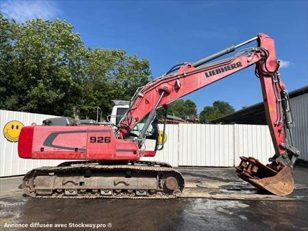 Cette pelle sur chenilles de la marque Liebherr est le modèle R926 LC de 2013. Longueur : 9 M 40 Largeur : 2 M 97 Hauteur : 3 M 25 Poids : 27300 kg. Largeur chenilles : 600 MM Flèche monobloc Lignes hydrauliques supplémentaires Clapets de sécurité Protections de cabine Graissage automatique Caméra de recul Climatisation Moteur Liebherr D934 A7 de 129 kW (175 ch) 8505 heures