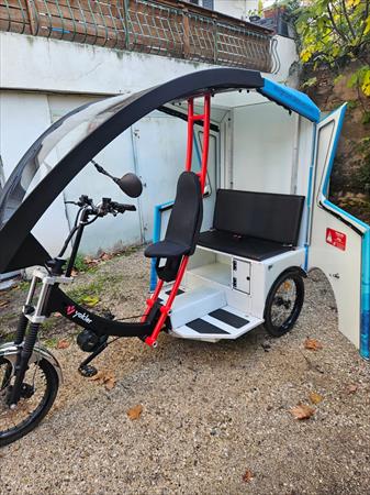 Ce vélo taxi (Fabriqué en France) à assistance électrique est un vélo taxi robuste, de conception professionnelle, idéal pour :Le transport de passagers (1 conducteur + 2 passagers adultes ou 3 enfants)