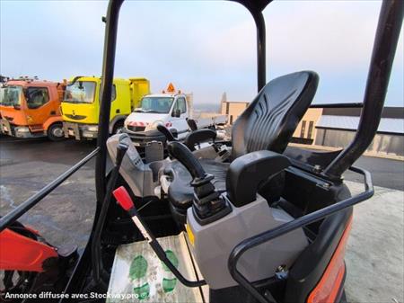 Année : 2019 Marque : KUBOTA Modèle : U27-4 Nombre d’heures : 1147H au compteur Lame bull 150 CM CANOPY Moteur 3 cylindres Puissance : 15.5 KW Poids : 2.565 Tonnes Patin 300mm Attache rapide mécanique Déport pied de flèche Chenilles Très bon état Possibilité godet terre 400e et godet tranché 300e Matériel en très bon état !