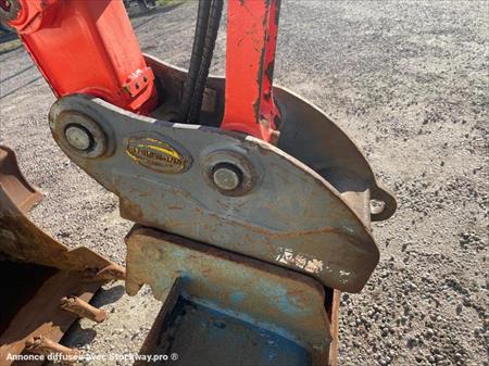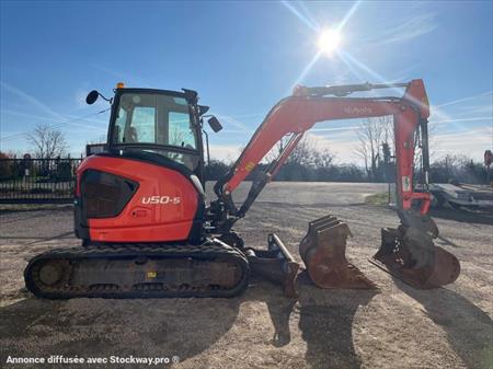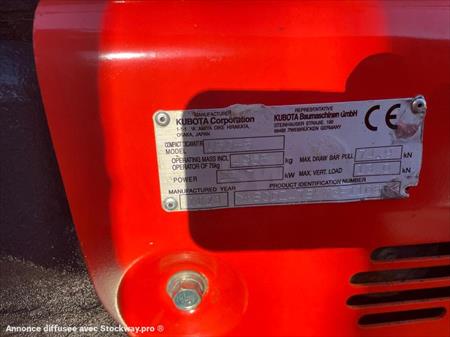 Kubota U50-5 Numéro de stock : 7245 Marque : Kubota Modèle : U50-5 Année : 2021 Heures : 1266 Numéro de série : KBCDZ47BKM3F11066 Poids : 4960kg Hauteur : 2m55 Largeur : 1m96 Longueur : 5m35 Chenilles : Caoutchouc Usure chenille droite : 60% Usure chenille gauche : 70% Godets : 150cm / 55cm / 25cm Nombre de godets : 3 2 Vitesses : Oui Moteur : Kubota 3 cylindres Accessoires : - Ligne auxiliaire - Attache rapide hydraulique - Climatisation Tarif vendu dans l’état : 43 500€ H.T (TVA à 20% récupérable pour les professionnels) Possibilité de matériel vendu révisé, vidangé et garantie pour un supplément de 1 500€ HT. Nous sommes une entreprise multimarques spécialisée dans le négoce de matériels TP et Agricoles dans les Deux-Sèvres. Une large gamme de produits est disponible sur notre parc : Mini pelle, chariot télescopique, dumper, remorques et autres matériels divers. Nous pouvons assurer des livraisons dans toute la France.
