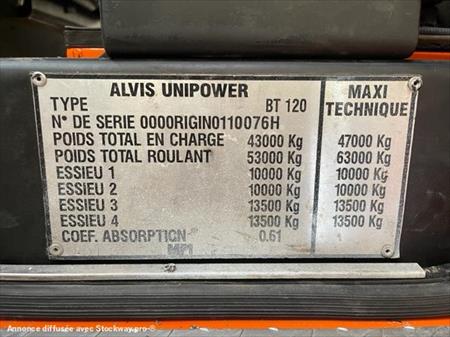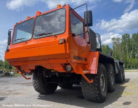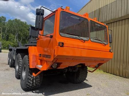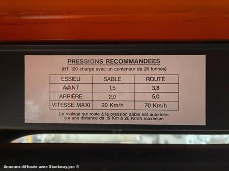 PORTE CONTAINER UNIPOWER MPI BT 120 8x8 Convient aux chantiers difficiles d'accès Année : 1999 3 999 kms Treuil avant et arrière hydraulique Poids à vide : 18T800 PTAC : 43T l x L : 3m x 10.10m Empattement : 3.553 Pour plus de renseignement merci de nous contacter au 06.17.29.20.50 Cordialement GOVIN Stéphane