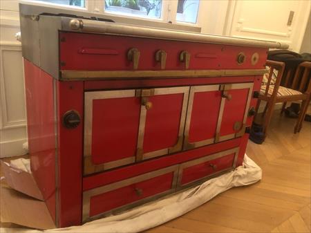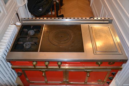 Piano La Cornue Chateau 120 de coloris rouge (léger), coloris fait sur commande.Parfait état de fonctionnement