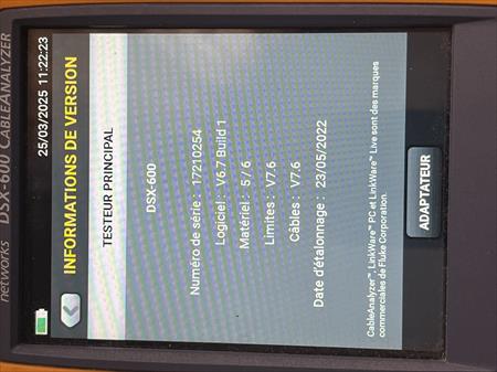 ANALYSEUR CERTIFICATEUR DE RESEAU FLUKE DSX600 PRO FLUKE