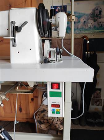 En tres bon état, elle fonctionne sur 220V, il y la notice en francais pour la machine etle servomoteur en anglais, quelques accessoires : canettes, aiguilles, un pied etc. l´entretien est fait regulierement.Essais possible sur place, Departement 68 env. Mulhouse.