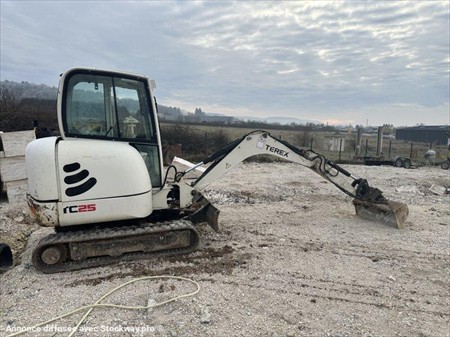 Mini-pelle TEREX type TC25 Année : 2008 Heures : 5500 Poids : 2.45 t Longueur : 4.51 m - Largeur : 1.45 m - Hauteur : 2.45 m Moteur Mitsubishi S3L2 (17.4 kW) Ligne hydraulique Coupleur + 3 godets