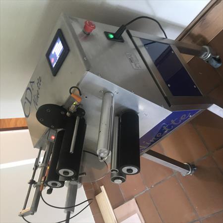 Vends en TRÈS BON ÉTAT, Étiqueteuse semi-automatique CDA NINETTE 1 avec châssis et Kit mini pour les contenants ayant un petit diamètre.
