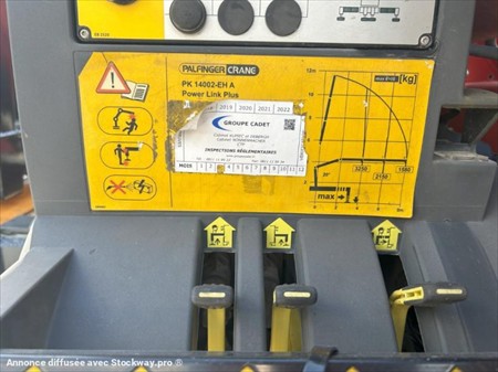 Véhicule équipé, boite automatique, blocage pont, climatisation, suspension méca, grue Palfinger 140002 EH-A 2 extensions, radiocommande, bras 10T Jimeca coulissant. Véhicule entièrement révisé et garantie 3 mois sur la chaine cinématique