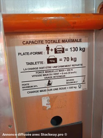 ATOUTLOC vous propose à la vente: Nacelle verticale occasion Marque: JLG Modèle : TOUCAN DUO Année : 2007 Motorisation : Electrique Ht. de travail : 6 m Ht. de plate-forme : 3 m Longueur : 1.65 m Largeur : 0.78 m Hauteur : 1.79 m Poids: 1030 kg Stock : ATL-27 Prix Hors-Taxes, départ ATOUTLOC : 3 000 € HT Contrôle Vgp inclus. Machine fournie avec certificat CE et manuel utilisateur Livraison possible Pour voir toutes nos nacelles élévatrices, rendez-vous sur notre site internet www.nacelles-occasion.fr (Nacelles ciseaux, Nacelles télescopiques, Nacelles articulées, Nacelles sur remorque, Nacelles araignées, Nacelles sur chenilles, Nacelles à mât vertical) Pour tous renseignements, n’hésitez pas à nous contacter par mail à l'adresse suivante : contact@atoutloc.fr ; ou par téléphone au 03.27.22.34.65. ATOUTLOC 223 Avenue Jules Guesde 59124 ESCAUDAIN