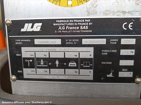 NACELLE AUTOMOTRICE MÂT VERTICAL JLG TOUCAN DUO JLG