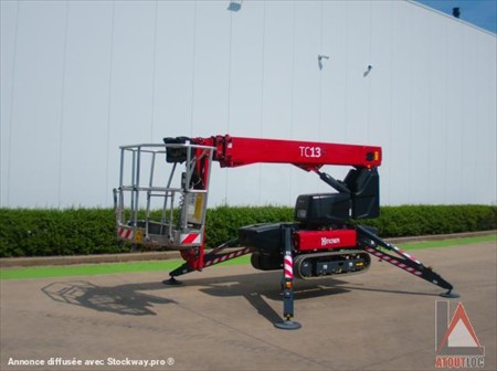 ATOUTLOC vous propose à la vente: Nacelle Araignée occasion Marque: HINOWA Modèle : TC13S Année : 2021 Horamètre : 55 heures Motorisation : Lithium Ht. de travail : 13 m Ht. de plate-forme : 11 m Déport : 6.40 m Longueur : 4.32 m Largeur : 1.30 m Hauteur : 1.95 m Poids: 2050 kg Stock : ATL-33843 Prix Hors-Taxes, départ ATOUTLOC : 35 450 € HT Contrôle Vgp inclus. Machine fournie avec certificat CE et manuel utilisateur Livraison possible Pour voir toutes nos nacelles élévatrices, rendez-vous sur notre site internet www.nacelles-occasion.fr (Nacelles ciseaux, Nacelles télescopiques, Nacelles articulées, Nacelles sur remorque, Nacelles araignées, Nacelles sur chenilles, Nacelles à mât vertical) Pour tous renseignements, n’hésitez pas à nous contacter par mail à l'adresse suivante : contact@atoutloc.fr ; ou par téléphone au 03.27.22.34.65. ATOUTLOC 223 Avenue Jules Guesde 59124 ESCAUDAIN
