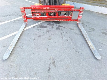 ERP50VM capacité nominale 5000kg cdg 500mm Pack Protection extérieure / Lavage à grande eau Construction standard Pont moteur étanche, blindage inférieur et protections latérales Démarrage par contact à clé Configuration Value Compartiment batterie 1006 mm Extraction latérale (utilisation d'ouvertures pour fourches) Porte sur charnières Mât triplex à Levée libre totale de 4835 mm (hauteur du mât Abaissé de 2370 mm) Inclinaison du mât - 6° vers l'avant / 6° vers l'arrière Avec caches de vérin d'inclinaison 1 Tablier de 1525mm - Classe 3 Sans dosseret d'appui de charge Fourches 1200 x 150 x 50 mm - Classe 3 Distributeur hydraulique à 4 fonctions 1 (2 auxiliaire) Leviers de commande hydraulique manuels Groupe flexible hydrauliques 4 fonctions (2 auxiliaires) Pneus pleins souples 7.00 x 15 pour roues motrices (bande de 1050.00 42.500 603.75 roulement double) roues avant jumelées Pneus pleins souples 7.00 x 12 pour roues directrices Panneaux de cabine avant/supérieurs avec moteur d'essuie-glace Rétroviseur panoramique Interrupteur directionnel intégré Colonne de direction inclinable réglable à l'infini Direction assistée à la demande Volant avec boule de volant Ceinture de sécurité standard Siège à suspension totale en vinyle Pare-boue avant et arrière Alarme sonore de recul Feu à éclat orangé - activé par contact à clé et interrupteur 2 feux de travail avant et 1 arrière halogènes 1 avec feux stop, Arrière et de recul Convertisseur CC/CC auxiliaire Convertisseur CC/CC primaire Documentation en français Batterie Midac 80 V 840 Ah (DIN) Batterie avec Remplissage centralisé Chargeur Midac 80/120, 50 Hz, triphasé, 12 heures Disposition de mise en charge conventionnelle de batterie En option Ecarteur de fourches 550 à 2610mm ext fourches , fourches boulonnées 2000mm, prix 7500,00 EHT