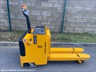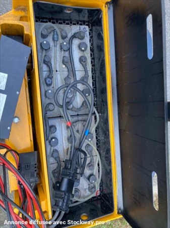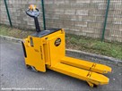 RARE TRANSPALETTE ELECTRIQUE CAPACITE 5 TONNES Fourches section: largeur 220 x hauteur 110 x longueur 1155mm Ecartement extérieur fourches 585mm espace intérieur fourches 145mm Ast suivant Vdi: 2212mm Indicateur limiteur de décharge Direction par Timon électrique