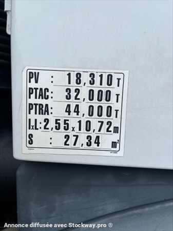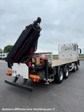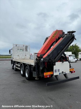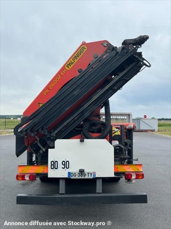 Pack électrique, climatiseur, assistant de trajectoire, toit ouvrant, cabine 2 places, porte latérale, siège à suspension, boîte automatique, suspension AR pneumatique, Euro 6, Longueur de plateau 6.80 m , Grue 6 rallonges PK260002-EH E équipé d'une radio commande, Moteur OM 470 6 cc en ligne 10.7l 315 kw .