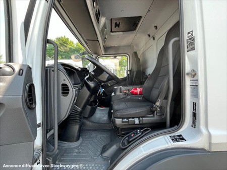 Pack électrique, climatiseur, assistant de trajectoire, toit ouvrant, cabine 2 places, porte latérale, siège à suspension, boîte automatique, suspension AR pneumatique, Euro 6, hayon rabattable Dhollandia 1 500 Kg.