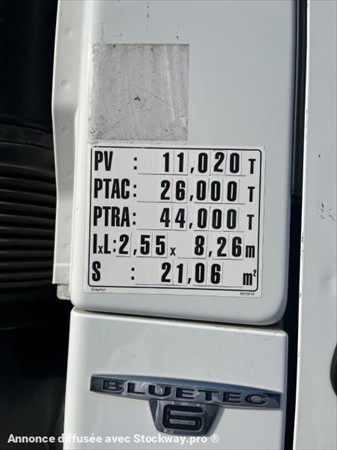 Équipement principaux : Pack électrique, climatiseur, assistant de trajectoire, toit ouvrant, cabine 2 places, porte latérale, siège à suspension, boîte automatique, suspension AR pneumatique, Euro 6, Bras ampliroll MARREL, crochet Rockinger. Description détaillée : Le Mercedes-Benz AROCS est un camion fiable et robuste, idéal pour tout types de chantiers grâce sa capacité d'adaptation optimale. Son moteur Euro 6 permet de concilier performance et respect des normes environnementales le bras ampliroll intégré facilite le chargement et déchargement, tandis que la cabine spacieuse et les technologies embarquées garantissent un confort de conduite optimisé.