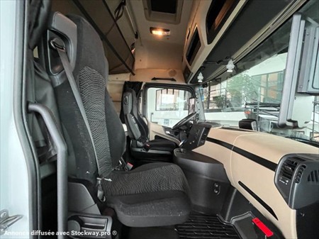 Description : High Performance Engine Brake Mercedes PowerShift 3 Prédictive Powertrain Control Version de motorisation Euro VI, D Cabine Anteviseur aérodynamique chauffant Cabine L Cabine L StreamSpace, 2,50 m, plancher plat Climatiseur automatique Déflecteur, emboitable, avec déflecteurs latéraux Largeur de cabine 2,50 m Lit inferieur confort MirrorCam Pare-soleil extérieur, transparent Siege conducteur oscillant, confort Siege fonctionnel pour passager StreamSpace Variante de plancher, plancher plat Sécurité Active Brake Assist 5 Airbag, conducteur Assistant de contrôle de stabilité (ESP) Assistant de régulation de distance Avertisseur de franchissement de ligne Détecteur de panneaux de signalisation Régulateur de vitesse Système de détection de somnolence Radio/navigation/électronique Système de navigation Autres équipements Réfrigérateur, dans tiroir, sous le lit Description détaillée : Ce tracteur routier Mercedes Actros 1845 offre une excellente fiabilité et un grand confort pour les longues et courtes distances. Ideal pour le transport de marchandises lourdes grâce à son moteur puissant conforme à la norme Euro 6, garantissant ainsi des performances élevées tout en respectant les normes environnementales. Première main Garantie 3 mois