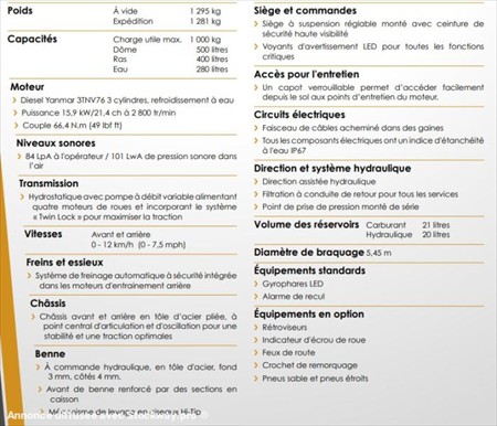 Mini dumper THWAITES 1T Hi-Tip Benne Télescopique